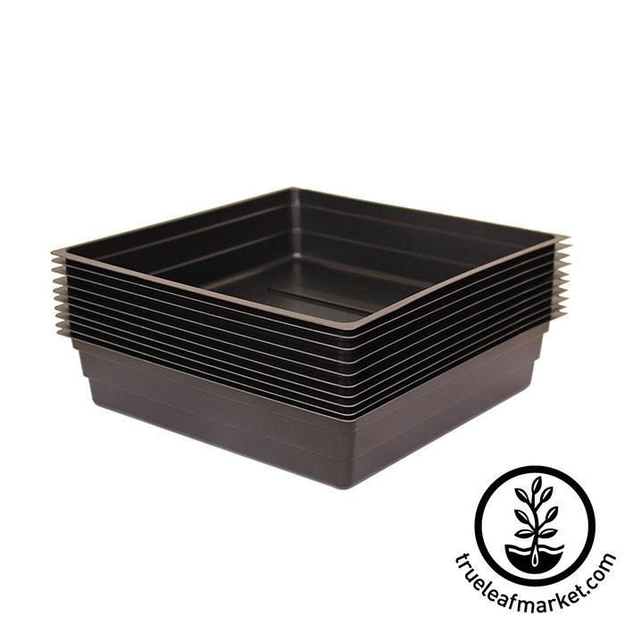 10x10 inch growing trays without drain holes (1010). Half the size of our 1020 plant growing trays / flats. Works well as drip tray, or for growing wheatgrass, microgreens and other growing applications. Re-usable growing trays. Choose Quantity: