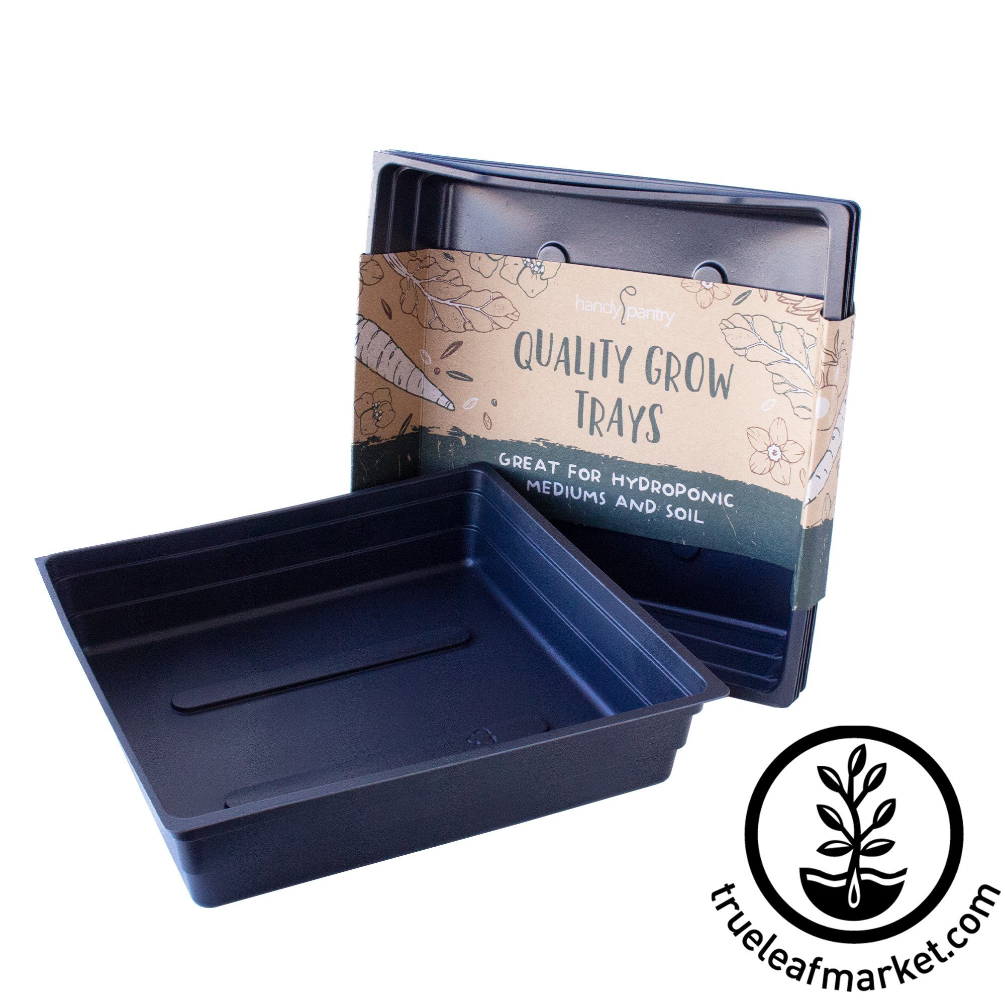 - Trays work with soil or hydroponic applications