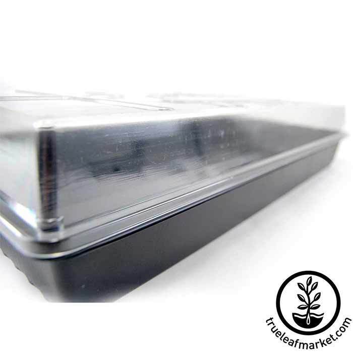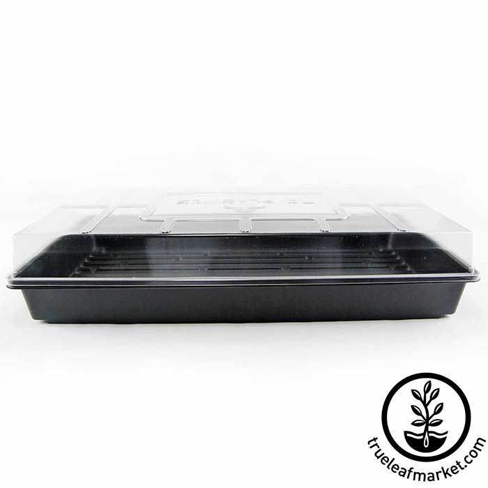 These 20" X 10" clear plastic domes fit perfectly with the black 10"x 20" trays we offer (both with and without drain holes). These domes may not be a perfect fit with similar trays sourced elsewhere.